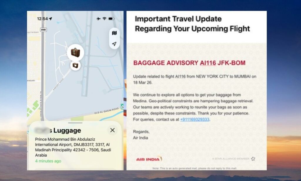 New York City / Mumbai, March 26, 2026: Passengers on Air India flight AI116 from New York to Mumbai, which made an emergency landing in Medina on March 19, say they reached their destination—but not their belongings.