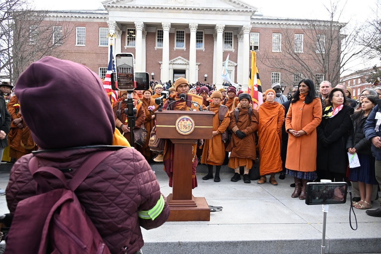 Annapolis, MD, Feb. 12, 2026 — Maryland Lieutenant Governor Aruna Miller on Wednesday welcomed nearly two dozen Buddhist monks to the Maryland State House, marking the final stop of their 2,300-mile “Walk for Peace” that began in Fort Worth, Texas, last October.