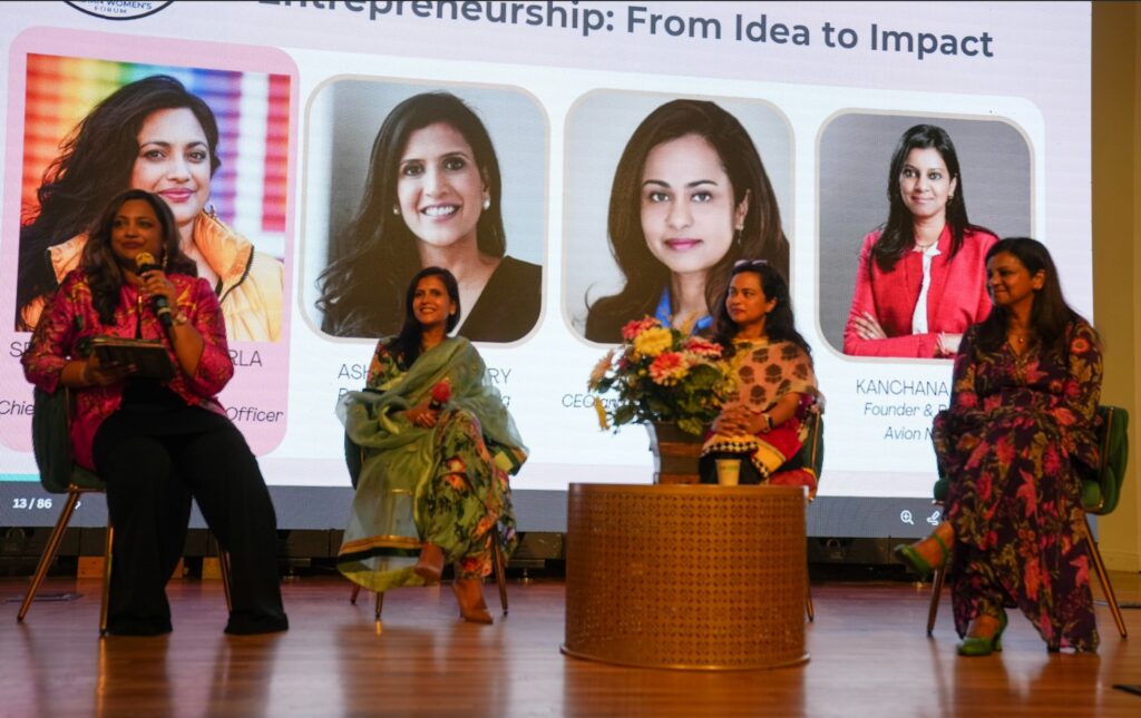The entrepreneurship panel brought together Asha Chaudhary, Anju Mathew, and Kanchana Raman for a candid discussion moderated by SreeRatna Kancherla. The conversation explored the realities of building businesses from the ground up. Panelists shared their entrepreneurial journeys, including early risks, funding challenges, and scaling strategies. They spoke about what success personally means to them, moving beyond financial metrics to include impact, fulfillment, and resilience. The discussion also highlighted key leadership qualities such as adaptability, empathy, and decisiveness. Each panelist reflected on obstacles they faced, from navigating male-dominated industries to managing self-doubt, and how perseverance and clarity of purpose helped them move forward.