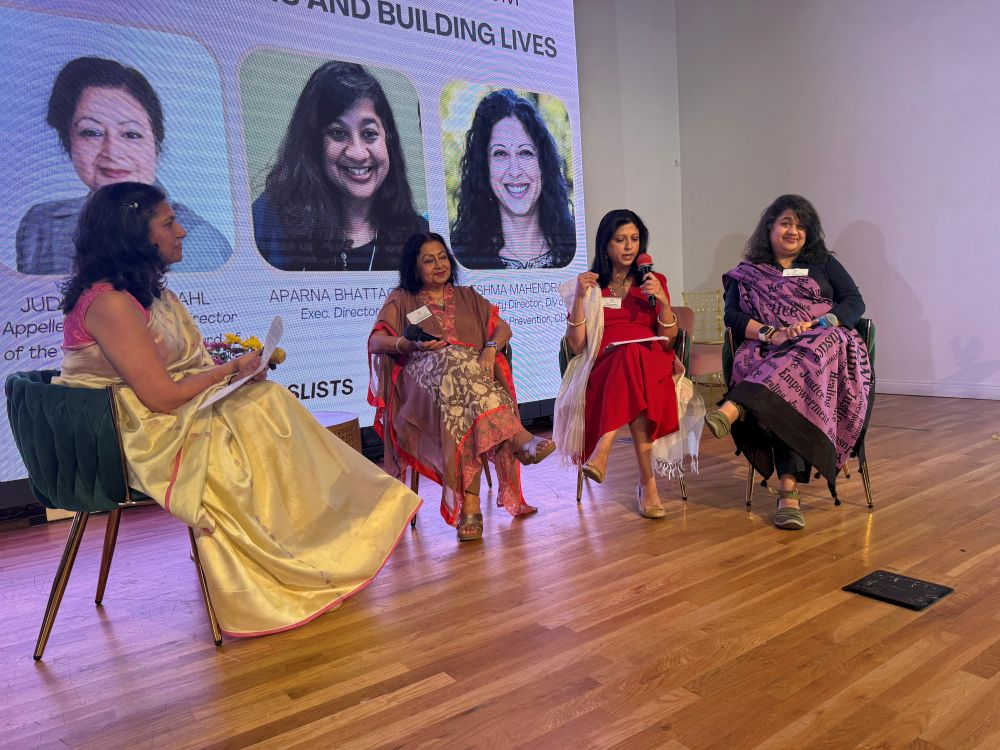 The Breaking Norms panel, moderated by Gita Vemparala, featured Reshma Mahendra, Aparna Bhattacharyya, and Judge Neera Bahl. The conversation went beyond personal journeys to shine a courageous light on domestic violence in the South Asian community — a reality too often left unspoken. Reshma brought public health data to the table and spoke about prevention of domestic violence, Aparna spoke to the barriers that keep women silent, and Judge Bahl offered a powerful perspective – both through a legal lens and what she has seen around her as a long-standing member of our community. Together they challenged the audience to move from awareness to action, closing on a message of resilience, collective responsibility, and hope.