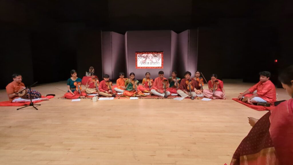 The collaborative and intergenerational nature of Carnatic Strings is further enriched by the presence of her son, Ajay. Trained in both Western and Carnatic traditions, he brings a unique harmonic sensibility to the ensemble. His understanding of chords, counterpoint, and melodic layering allows him to compose supporting musical lines that add depth and texture to traditional frameworks. The result is a sound that feels expansive and contemporary, while remaining firmly rooted in classical integrity.