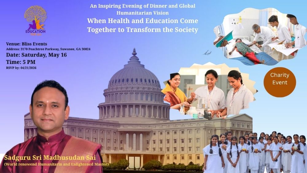The Atlanta event will feature a blend of networking with community leaders, an inspiring talk by Sri Madhusudan Sai, and a formal dinner. It aims to bring the local community together to support initiatives that provide free education, healthcare, and nutrition to underserved populations, helping to create a more equitable future.