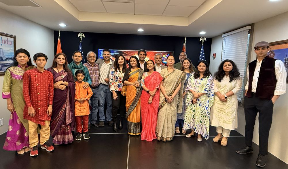 Consul General Ramesh Babu Lakshmanan with Ritambara Mittal (center) and others.
