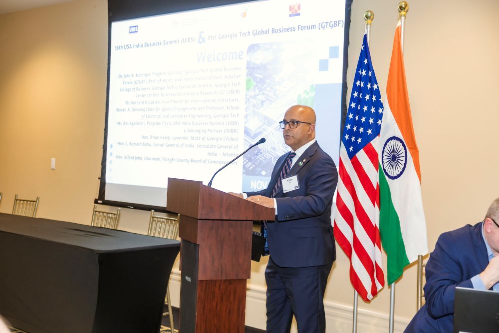 Setting the broader context, co-chairs Dr. John R. McIntyre, Professor and Executive Director at the Georgia Tech Center for International Business Education and Research, and Mr. Ani Agnihotri, Program Chair of UIBS and Managing Partner of USIBRC, highlighted the event’s strategic focus. Dr. McIntyre stated in his welcome address that in the strategic sphere, India is definitely the elephant in the world, dominating the normal stage. He emphasized that both countries must find solutions that not only address existing challenges but also harness emerging opportunities.