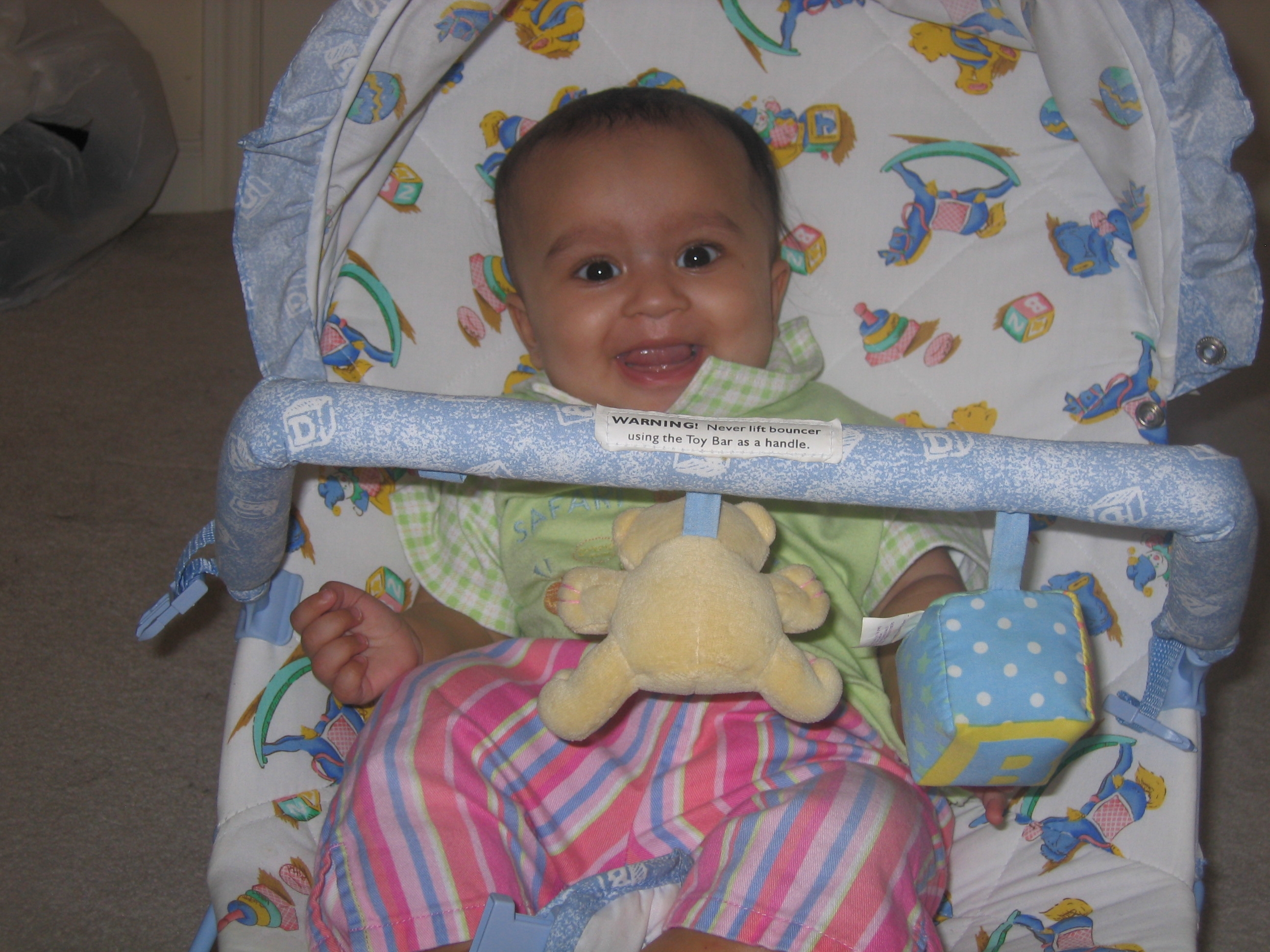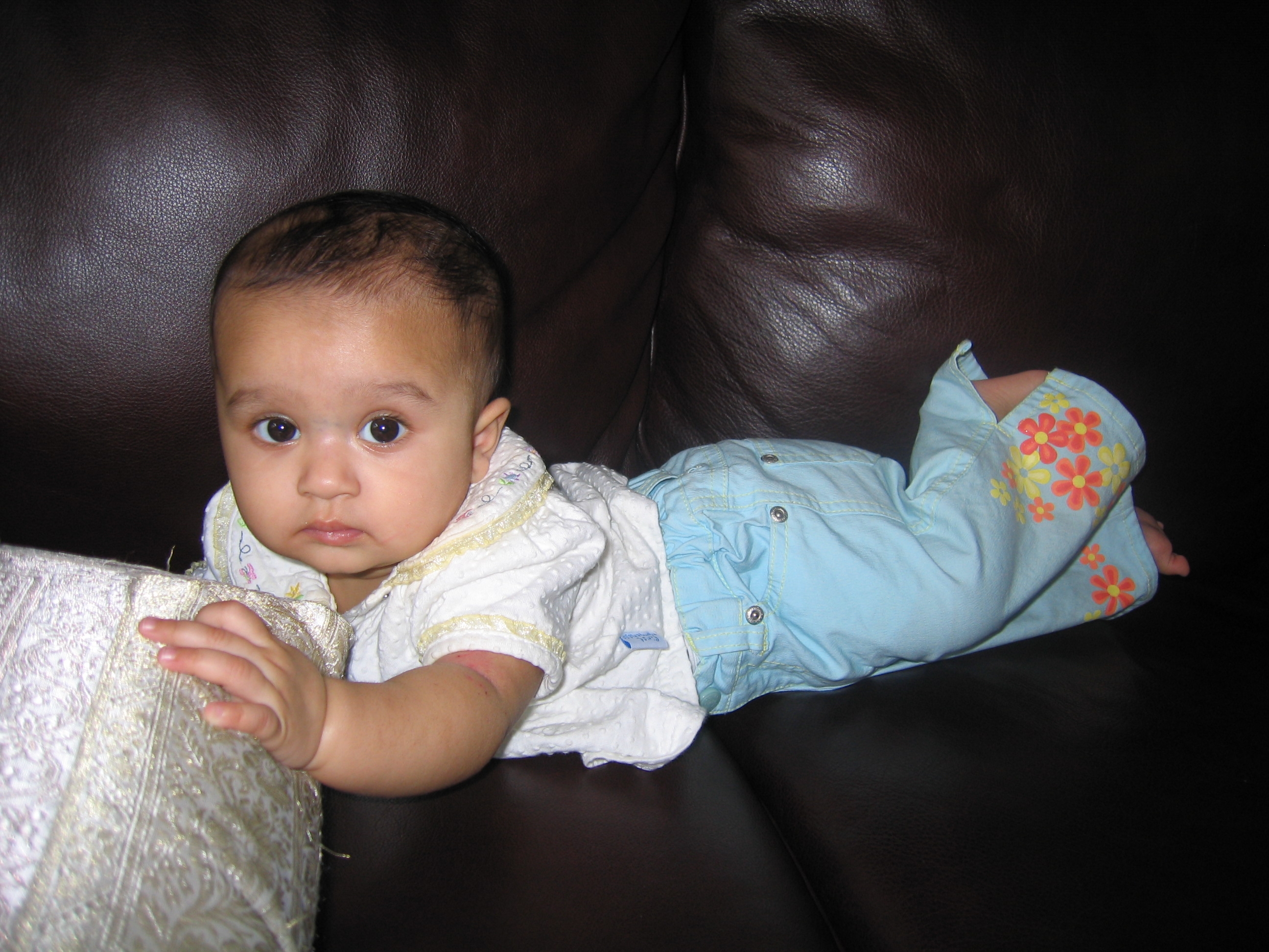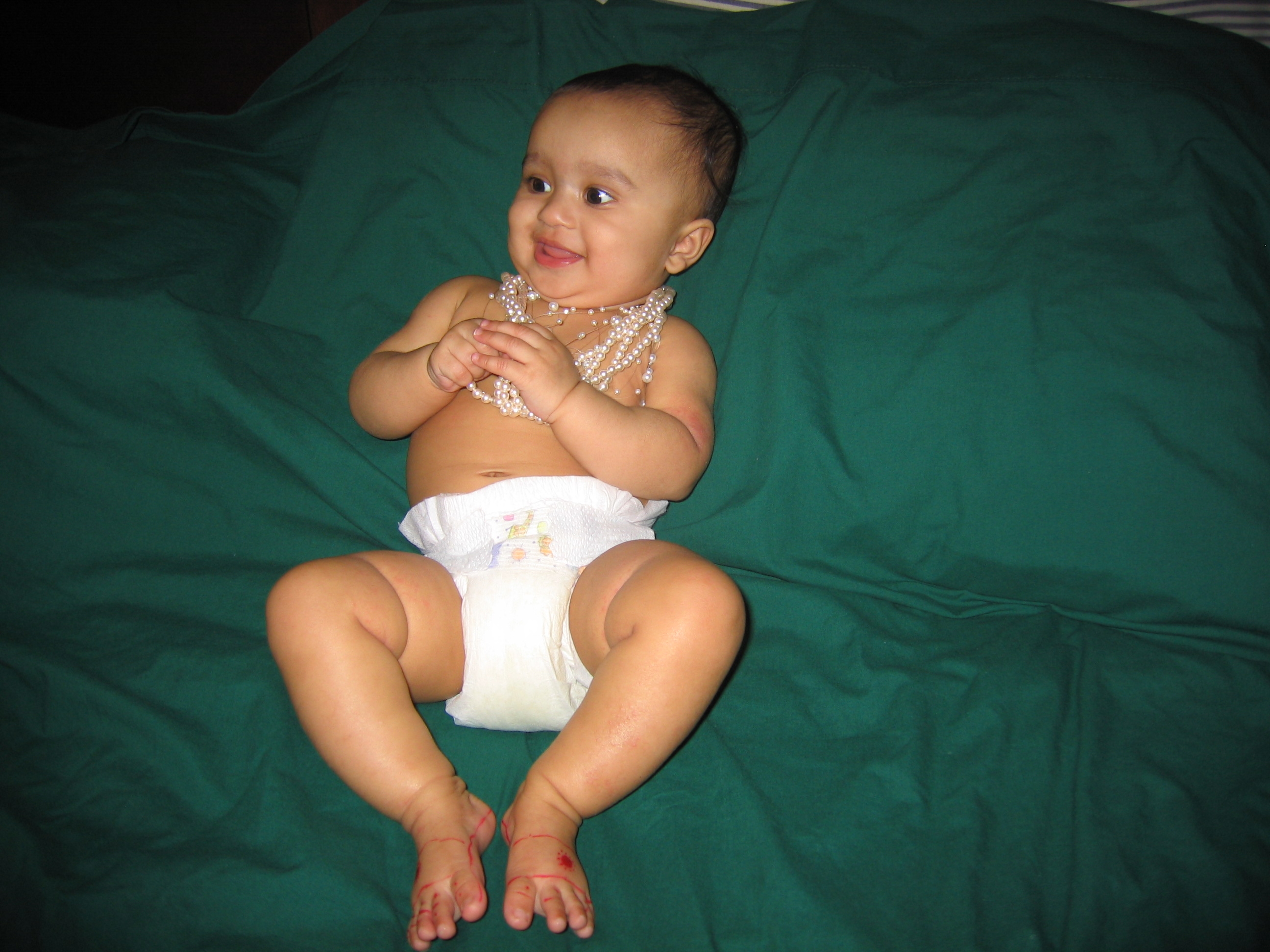 More tidbits on Meghna: She is a wonderful baby. Smiles and laughs at the slightest provocation. She radiates a playful, peaceful personality. Enjoys exercising her vocal chords and is getting interested in the keyboards.