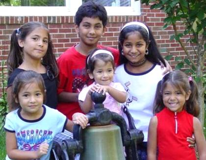 Thomas and Tessy Mathew's grandchildren visiting their home in Bluefield, WV. (From bottom left corner) Hannah Mathew, Danielle Mathew, Andrew James, Mandi James, Emily Mathew and in the center is Olivia Mathew. The Mathews have a son, Basil Mathew, living in NC with his family and a daughter, Biji Mathew James, living in MD with her family.