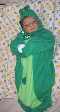 Dislikes: Being put a bouncer, car seat, or stroller where he feels he's closed in and unable to converse with people. He hates wearing socks, mittens, and hats.