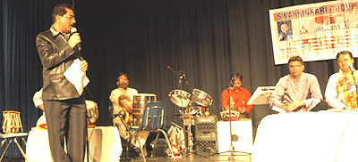Tripti Chhaya began with a beautiful recitation of ‘vigneshwaraya vardaaya surapriyaya.’and with Bhanubhai and Mazhar sang ‘ae malik tere bande hum’.’ Tripti sang an old time Gujarati favorite ‘Chhanu re chhapnu’ while Mazhar gave a foretaste of his singing talent with the vintage song ‘pankhidaane aa pinjaroo’. The audience had warmed up by now and soon erupted into spontaneous rousing sing-along as the three singers and the musicians raised the tempo. Requests for more choice songs began pouring in from the audience. ‘Dama Dam Masta Kalandar’ rocked the audience. In between songs,