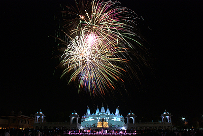 Among the highlights of this five-day festival was a special screening of the award-winning large format film Mystic India, which traces a young boy’s treacherous journey through India to spread a message of love, service and harmony. Following the film were fireworks, held with the illuminated Mandir as a backdrop.