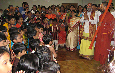 Over 80 students of the Atlanta Prajna institutes presented cultural programs before the Swamiji’s address. The effort was appreciated by Swamiji, who said the kids, “performed extraordinarily, and chanted the mantras and shlokas flawlessly.”