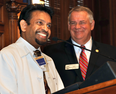 Well known and respected Gastroenterologist from Duluth , and a Clinical Associate Professor of Medicine at Emory University School of Medicine, Dr.Indran Indrakrishnan, was honored at the imposing Georgia State Capitol on August 24, 2011.