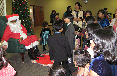 The highlight of the day’s service was the palpable excitement in children as Santa Claus brought them gifts. Lakshmi Rao’s two-year-old granddaughter Violet Schroer was thrilled with her stuffed angel, as were the other kids who were seen smiling with joy. Their happiness was certainly infectious and pervaded through the gathering.