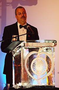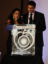 The ‘Oscar inspired’ event was emceed by Tushar Singh, the comedian and Suchita Vadlamani, FOX 5 Morning News and ‘Good Day Atlanta’ co-host (The podium was molded out of ice, with GIACC engraved on it). The festivities started with National Anthem of USA and India rendered by Arti Pandya. A foot tapping Bhangra by Karma Bhangra added vibrancy to the room. The Consul General of India Houston, Sanjiv Arora could not make it the event but the Vice consul stepped in. He talked briefly about the importance of biracial trade and added that India U.S trade had doubled in recent years. He congratulated the surge of Indian investments in U.S and vice versa.