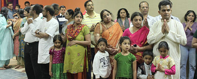 The opening ceremony of Hanuman Temple on Cumming Street in Alpharetta (next to Amma Kitchen) began at 10 AM with Sri Vishvaksena aaradhanam, followed by Punya vachanam and Vaastu Shanti. The prayers and rituals continued in the evening with Sri Vishvaksena aaradhanam, Punyavachanam, Rakshabandanam, Ankurarpana, Panchagavyadhi vasam and Sayyadi vasam. The elaborate services extended into Tuesday March 30th with Agni Pratishta, Kalasa Sthapana, Mulamantra vahanam, Snapanam, Pradhamaradhana, Samoohika Archana, Mantrapushpam, and distribution of Teertha and Prasadam. The evening had a special Archana, Tamalapakula Archana or Archana with Beetle leaves and also Sindoora Archana. The Prana Pratishta was well attended by over 100 devotees.