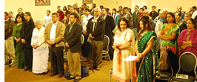 The flag hoisting was followed by the singing of the Indian and American National Anthems by all attendees.