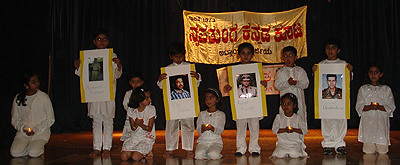 Kids ranging all ages actively participated in the programs choreographed by talented individuals in Atlanta. The kids were awarded a trophy at the end of their presentation and a 2-year old warmed hearts as she bent over adorably again and again in an Olympic acceptance kind of way each time the name of kids were read out. The kids at Kannada Koota paid homage to the brave 26/11 personalities who were killed in the Mumbai attack.