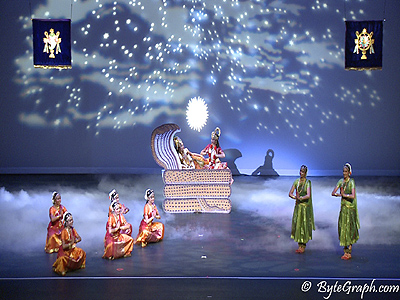The innumerable hours spent on stage design and the expertise in lighting by Dr. Raktim Sen and able backstage coordination by Ms. Kanaka Sathasivan and others were amply evident in the smooth transitions between scenes, timely costume changes and the whole ambiance on stage. Master of Ceremonies, Mr. Kumar Kantheti, wonderfully narrated the scenes and kept the audience well informed of what was to come.