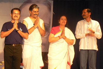 The program started with an invocation, national anthem, welcome speech by the NKK President, Pradeep Vittalmurthy. Accompanied by her fellow artists Sundar Raj, Ramakrishna Kannarpadi and Gajanana Naik, Laxmi Chandrashekar entertained the audience for nearly two and half hours with humorous plays Ratnana Parpancha and Heegaadre Hege. The laugh riot Ratnana Parpancha was a tribute to GP Rajaratnam, who has authored over 150 books ranging from short stories to Kannada literature. While the first half of the drama captured significant moments of Rajaratnam’s life, the second half was based on one of his plays Kambali Seve.