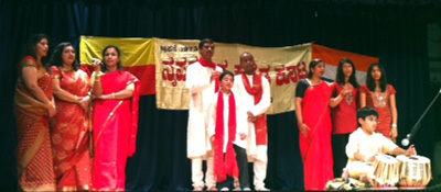 Members of NKK gathered together to celebrate the milestone of Karnataka state formation, Rajyothsava at the Hindu Temple, Riverdale on November 19 2011. The Kannada community surely had a lot of reasons to revel the occasion. The evening witnessed the beginning of a historic event, a democratic election, kicked off by the nomination process for selection of a 6 member governing council of a World Kannada Conference to be held in Atlanta, a first for NKK, since its inception in 1973. Also, as current NKK President Pradeep Vittalmurthy pointed out, the selection of Chandrasekhar Kambar, a noted Kannada playwright, poet and novelist for the Jnanpith Award, nation’s most coveted literary honor was also a proud moment that called for celebrations.