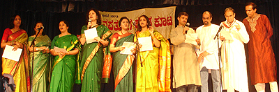 The program began with a Prayer and the American National Anthem followed by a fitting homage to Kannada artists such as popular Kannada actors Dr. Vishnuvardhana, renowned singer and music composer Dr.C.Aswath, and theatre and film personality Chandodi Leela that passed away the past year. Music played in the background as a slide show walked folks down the memory lane reminding the loss of talent in the Kannada film Industry.