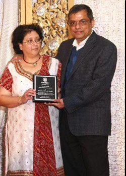 A special guest presented Swapon and Niloofer Mondal with the first annual Himmat Award for their courage and commitment in helping a young woman in their own community. Swapon Mondal encouraged the community to make a difference by taking action.