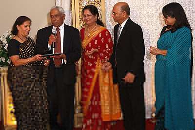 Dr. H.N. and Indira Ramaswamy were presented with the Ramesh and Vijaya Bakshi Community Change Award. The Ramaswamys were nominated by community members and were then chosen among several other nominees by the previous winners of this award.