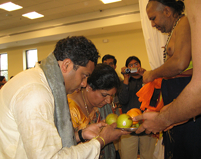 Nine Hindu priests conducted the ceremonies over the week. Priests from the Hindu temple of Atlanta, Riverdale, Florida, Huntsville, Nashville and Columbus, Ohio, joined the two resident priests Suresh and Ravi.