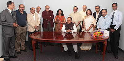 Dr. Subramanian Swamy with members of GOPIO, Atlanta chapter in their newly opened office at the Global Mall.