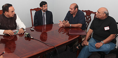 Dr. Subramanian Swamy at the press conference. Also seen (L to R) Ravi Ponangi of India Tribune, Ved Bhatia of TV Asia and Raju Kotak of Wownow.com.