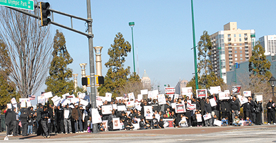 NGeorgia Tamils and their friends held a peace rally in front of the CNN Center on Saturday February 7th to protest the genocide of Tamils by the Sri Lanka government, and to draw the attention of public and press. Nearly 200 Tamil Americans, GATS (Greater Atlanta Tamil Sangam) and PEARL (People for Equality and Relief in Lanka) members gathered in front of CNN, rallying and holding placards, flags, and pictures, highlighting the scope of the ongoing genocide and demanding US action. Several banners were there read, "Yes, we can Stop War in Sri Lanka”, “Allow international media and monitoring missions to report freely about the humanitarian crisis in the conflict zones”, and “Allow international and local NGOs to the war affected areas to provide emergency assistance to internally displaced innocent civilians”.