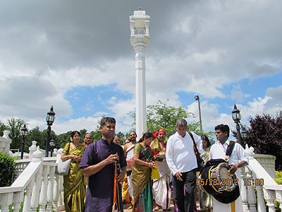 Six days annual Brahmotsavams, 20th anniversary of Hindu Temple of Atlanta and 8th Varshikotsavam of Siva temple began with Dwaja Arohanam (the hoisting of the flag) on May 23. Several hundreds of devotees participated in 6 day festival from May 23 - 28 with devotional fervor. The white colored sacred flag, Dhwajapatam carrying the image of Garuda, the celestial carrier of the Lord, was hoisted atop the Dwaja Stambham by the priests in the auspicious hours of the morning of May 23. The hoisting of the flag (Dwaja Arohanam symbolizes an invitation to the celestial Gods and demi-gods to witness the grand celebrations (Brahmotsavams) of the Lord.