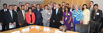 Two days long UIBS 2011 featured 54 distinguished business and diplomatic leaders from both nations, including the Honorable V.S. Senthil, economic minister of the Indian Embassy, Mr. Uday Kumar Varma, Secretary, Ministry of Micro, Small and Medium Enterprises, Government of India; Mrs. Sushma Berlia, President, Apeejay Stya Group; Mr. Raymond E. Vickery Jr., Senior Director, Albright Stonebridge Group; Mr. T.P. Sreenivasan, Former Ambassador of India; Mr. Subimal Bhattacharjee, Country Head, General Dynamics, India; Mr. Reginald R. Mebane, Director Office of Diversity Management and EEO, CDC and Dr. Nicolas Chronos, President and CEO, St. Joseph Translational Research Institute;