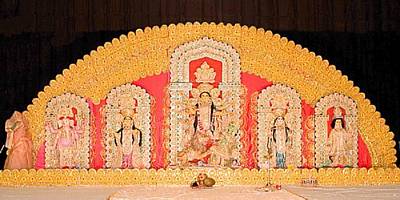 In keeping with the tradition of the last twenty-seven years, BAGA celebrated the most popular and important celebration for Bengalees, the Durga Puja, on October 7th, 8th and 9th at Shamrock Middle School in Decatur. Despite rainy weather on two out of those three days, hundreds of people participated in this auspicious occasion to celebrate the victory of good over evil (Ma Durga destroying Mahisasur, the demon). The celebration that started in someone's garage in 1979 by just a few local Bengalees of that time, now attracts a large number of people, not only from this state, but from neighboring states like Alabama, North Carolina, Tennessee, etc. and this year was no exception. About eight hundred participants came to take part in this year's puja celebrations. Local talents spent hours to decorate the idols and the stage, and this was appreciated by all who were present.