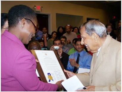 Earlier in the same meeting at the same venue Lisa M. Borders, President of Atlanta City Council presented the proclamation from the Atlanta City Council. The proclamation referred to Dada J.P. Vaswani “as a philosopher, humanitarian, an acclaimed writer, powerful orator, messiah of ahimsa, and a non-sectarian spiritual leader, who has captivated the hearts of millions worldwide, a man who symbolizes the true spirit of the Indian rishis and as a harbinger of love, peace, and hope.”