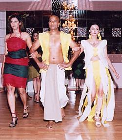 The local fashion show called ‘Raw’ was well choreographed by Atlanta based actor/model Shezi Sardar, and displayed the debut collection of Shally Venkatesh. The 10 models displayed poise and confidence as they entered through the rear door and wound they way through the crowd before taking the runway. The entire collection had a ‘raw’ look to it, with jute as the basic fabric. Yasmeen Ameer was responsible for the hair and make-up.