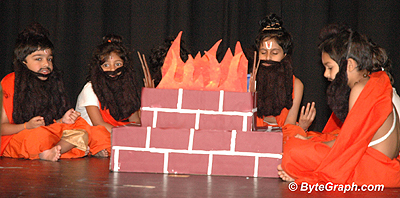 Over 160 children in the age group, 3 to 17 years took part in a beautiful performance of the Ramayana at the Meadowcreek high school in Norcross September 9. For over 100 minutes, the children performed to a packed auditorium of over 1000 Hindus and non-Hindus, who enjoyed the play and broke into thunderous applause when Ravana was killed by Lord Ram, signifying the victory of good over evil.