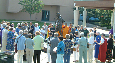 Raj Razdan, representing the Hindu faith, expressed her immense pleasure and honor to provide the benediction on peace at a location where humanities two most revered apostles of peace are memorialized. Her reference was to the life-size bronze statue of Mahatma Gandhi adjoining the new Ebenezer Church. The Gandhi Statue was dedicated and inaugurated in January 1998.