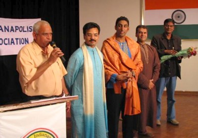 Another big moment for Karunya’s fans was the part where he was felicitated by GITA and IAI by the presentation of a plaque, a shawl and was honored with the title of “Gaana Kala Bhushana” (a gem or ornament to the art of singing) with the backdrop of vedic chants by Dr. DHR Sarma. Like the Julius Caesar quotation, “Veni vidi vici (I came, I saw, I conquered)”, Karunya came to Indy, he sang and he conquered the hearts of Indians from more than three US states and left the program with the admiration and the deserving title of “Gaana Kala Bhushana” that was whole-heartedly and affectionately presented to him by his fans. The program concluded by a vote of thanks by GITA president Mr. Raju Chinthala. The executive committee members of GITA, IAI and many volunteers and sponsors helped to make this program a grand success.