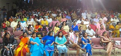 Indians from Indiana, Illinois, Ohio and other states were enticed by Karunya’s singing in a nearly 3 hour long program by this singing sensation. The program, jointly organized by Greater Indianapolis Telugu Association (GITA) and India Association of Indianapolis (IAI), was held in Indianapolis on July 9, 2006. Since about 500 Indians attended this program and thoroughly enjoyed Karunya’s melodious and celestial singing it could be given the title of “Karunya 500”. The hall where the program was held reverberated throughout the program with non-stop applause from the audience while many of them sang along with Karunya or joined the dance.