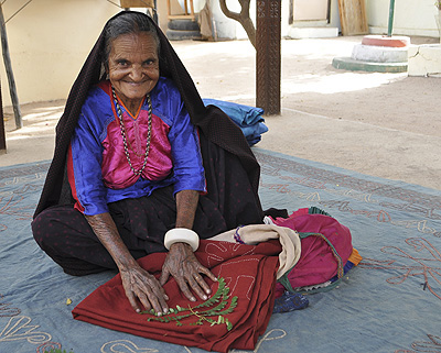 Kala Raksha considers traditional art the core resource that artisans hold, which can potentially be a source of income at a more desirable level than that of manual labour. Kala Raksha engages women in the designing and pricing, as well as production of work. Thus, they are full participants in the income generation work that we do. Because each work is created as a unique piece, we hope the work will be valued as art. Since 2005 we have furthered our philosophy by establishing a design school for artisans, Kala Raksha Vidhyalaya. Graduates have increased their capacity as artisan designers, and each year twelve women are engaged to create samples for the Kala Raksha collections. In 2010, Kala Raksha launched the trademarked concept Artisan Design to highlight and value work that is designed and created by the artisan.