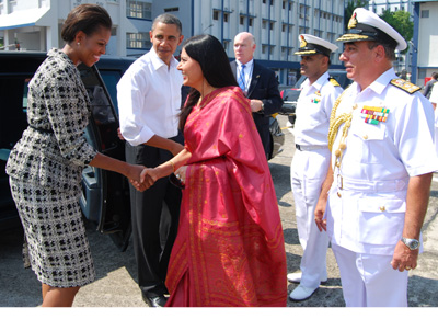 The similar was the Obamas demeanour at the interaction with farmers and students at St. Xaviers College. They shook hands with the
