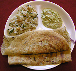 Variation: Instead of black eye beans use whole mung beans or split mung dal with skin or half mung dal with skin and half with out the skin. This dosa is called Pesarattu. This is a specialty of Andhra Pradesh. Upma, Pesarattu and chutney are a very healthy combination and very filling.