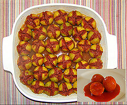 After eight days place the limes along with juice in the oven with light on for a day. Keep the oven door open a little to have air circulation. Turn the limes twice. By this process limes will loose their bitterness and moisture. If the oven door is closed the moisture will make the limes soft and the pickle will be spoiled after a while. It is very important to keep the oven door open slightly.