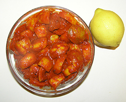 Whenever we are recovering from fever we used feel like eating some thing sour and salty. This pickle tastes good when mixed with hot rice and little ghee.