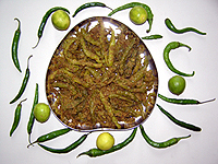 Add lemon or lime juice and vinegar to chilies. Fry for 8 to 10 minutes in low heat.