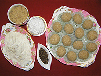 My mother used to make this laddu during Dasara holidays, when the school children came door-to-door singing Dasara songs.