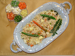 Add potato cubes, carrot cubes, cauliflower, and fry for three minutes. Add onions, green chilies, ginger, and curry leaves. Fry for two more minutes or until onions become translucent. Add peas, tomatoes and salt and fry for two minutes, Add ¼ cup water and cover the pan for a minute. Remove the lid and add atukulu, and lemon juice. Mix slowly to incorporate flavors with a heatproof plastic spoon or spatula so that atukulu will retain their shape. Turn the heat off and keep it covered until ready to eat.