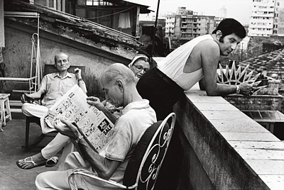 reads the newspaper. Bombay 2004